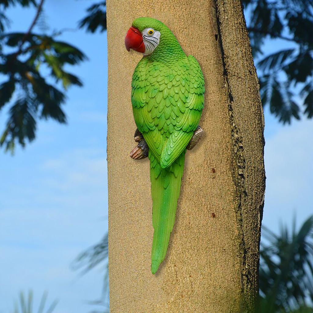 Green Hanging Parrot Statue In Courtyard Garden Tree Interior Home Decoration