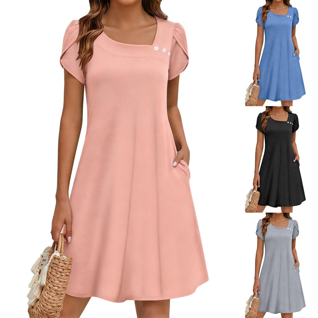 Dámské šaty s květinovým potiskem, krátkým rukávem a kapsami, ležérní šaty s květinovým potiskem