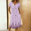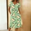 Dámské módní retro tištěné kulatý výstřih krátký rukáv knoflíky střední délka ležérní šaty