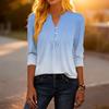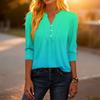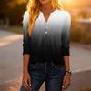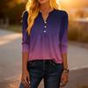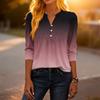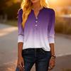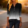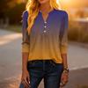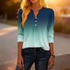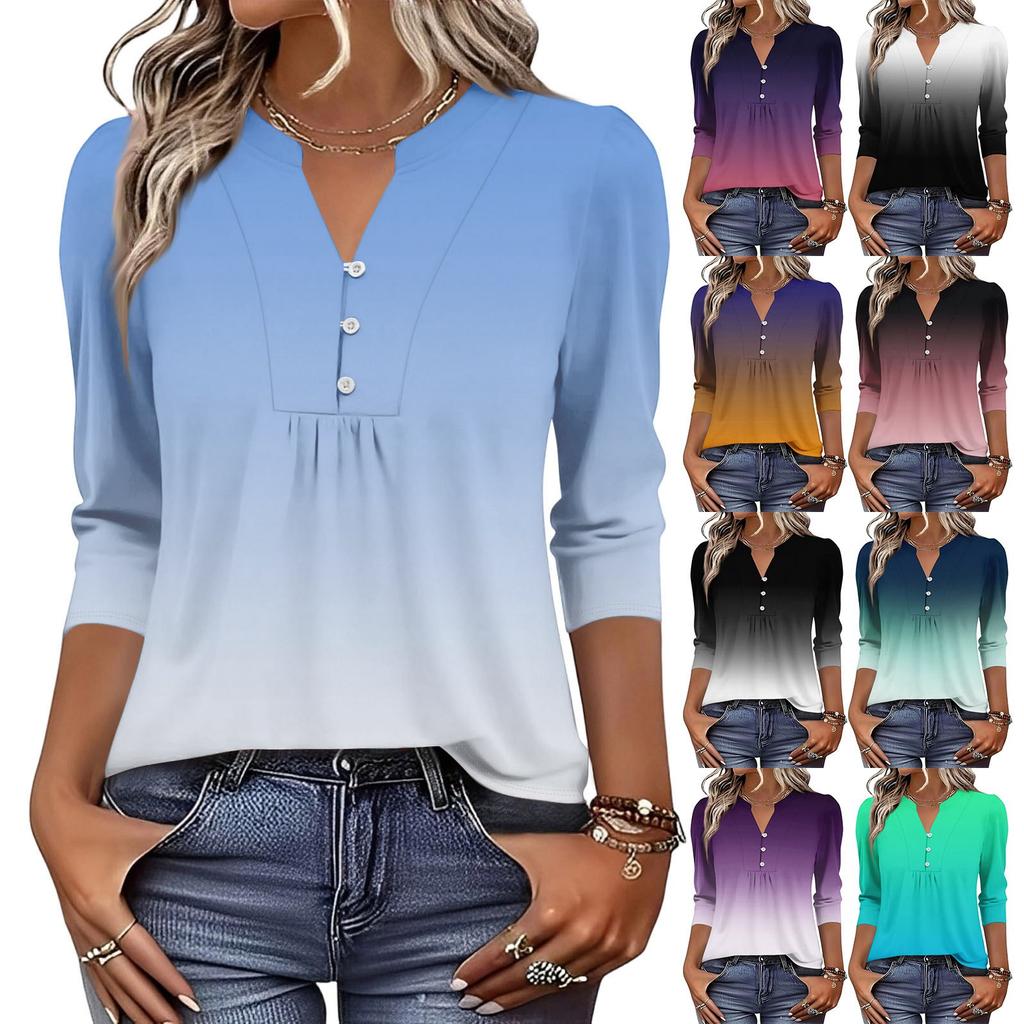 Dámské módní ležérní tričko s bloky barev, gradientním potiskem, výstřihem do V, knoflíky a tříčtvrtečními rukávy
