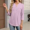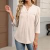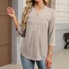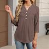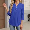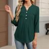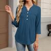 Dámské módní ležérní barevné tričko s V-výstřihem, ozdobným knoflíkem a tříčtvrtečním rukávem