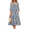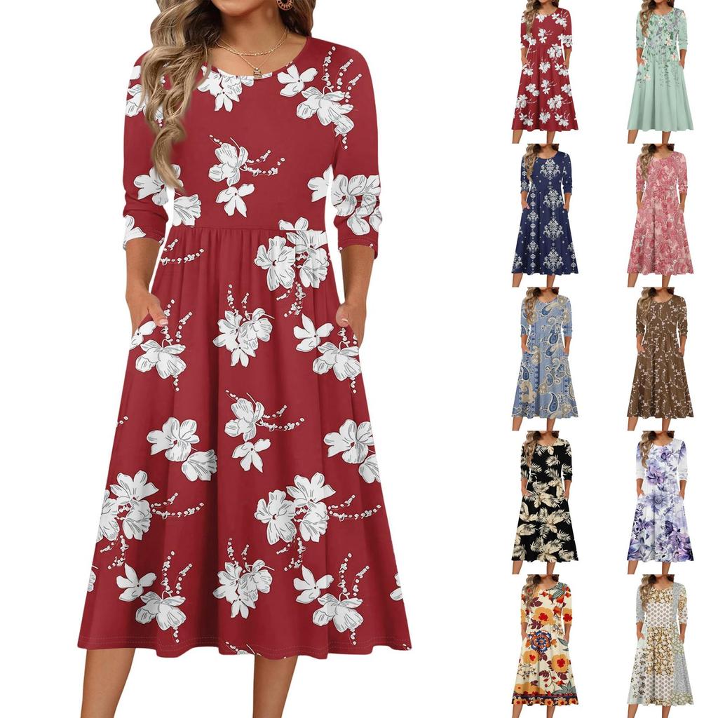 Dámské šaty s 3/4 rukávem, ležérní, splývavé, áčkového střihu, midi tričkové šaty s kapsami, kulatý výstřih, na dovolenou, boho, plážové letní šaty