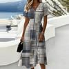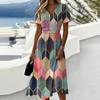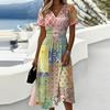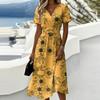 Dámské ležérní módní květinové šaty s krátkým rukávem a výstřihem do V