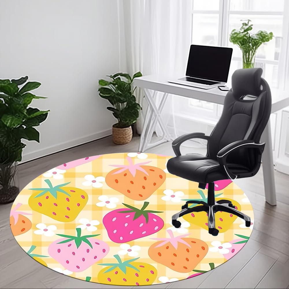 1PC Strawberry Pattern, Office Round Rug, Non slip, Soft and Durable Office Rug for Interior Decoration, Perfect for Office