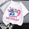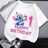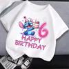 Tričko s číslem stehu Krátký rukáv Kreslený potisk Kulatý výstřih Dívčí oblečení Roztomilé Bavlněné Anime Topy Módní Dárky k narozeninám