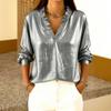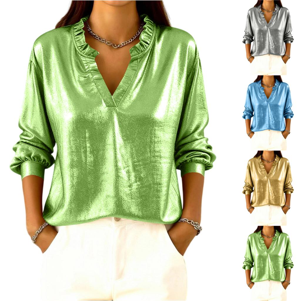 Women's Casual Leaf-shaped V-neck Loose-fitting Long-sleeved -color Blouse Shirt