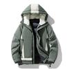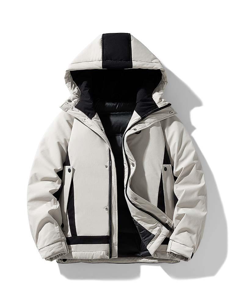 Introducing the ultimate winter essential for men: a warm hooded down jacket designed to keep you comfortable and stylish in the coldest weather. Filled with premium duck down, this jacket offers exceptional insulation to maintain warmth without compromising on style. The stand neckline provides additional protection against chilly winds, while the loose fit ensures effortless layering and freedom of movement. Crafted from durable polyester material, the jacket also features a hood lined with soft polyester fur for added coziness. This outerwear's insulated thickness makes it an ideal choice for facing winter's harshest elements while staying fashionably on-point.
