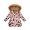 Dětská vycpaná bunda Chlapci a dívky Módní potisk Kreslený Velký chlapec Dlouhý límec Polstrovaná bunda s kapucí