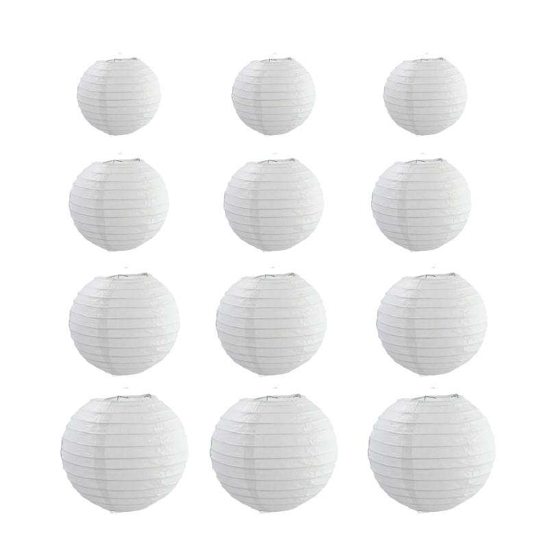 Package Contents: 6", 8", 10" and 12", each size has 3pcs, 12pcs paper lanterns in total.