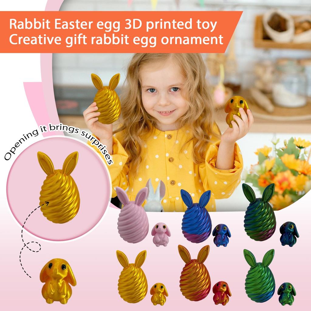 3D Printed Movable Easter Bunny Egg Toy, Creative Gift, Bunny Egg Ornament