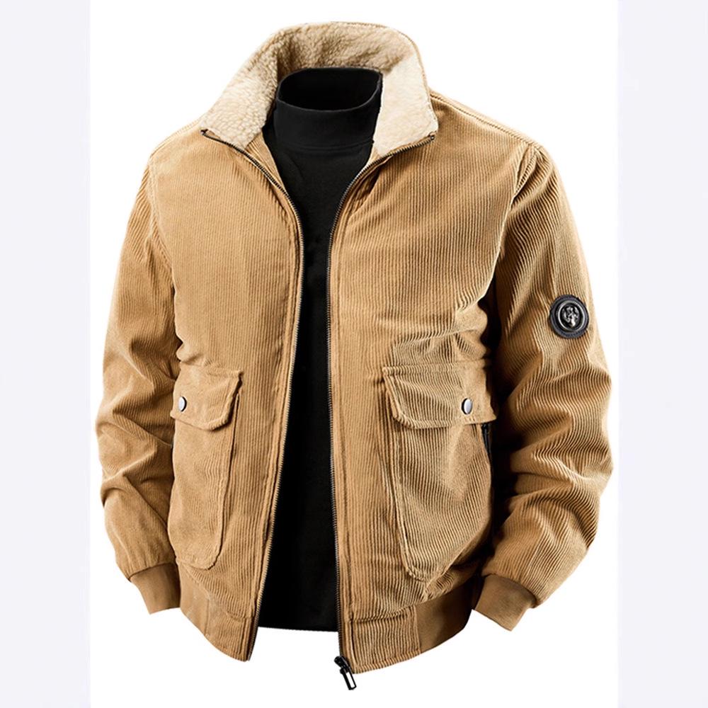 Stay cozy and stylish this winter with this mid-weight, casual jacket. Featuring a classic retro design, the jacket combines the timeless appeal of corduroy with the warmth of lambswool. Its stand collar adds an extra layer of protection against the cold, ensuring comfort on chilly days. Made entirely from cotton, both the outer material and the fur lining promise softness and breathability. Perfect for adding a touch of vintage flair to your winter wardrobe, this jacket is a versatile and practical choice for any casual occasion.