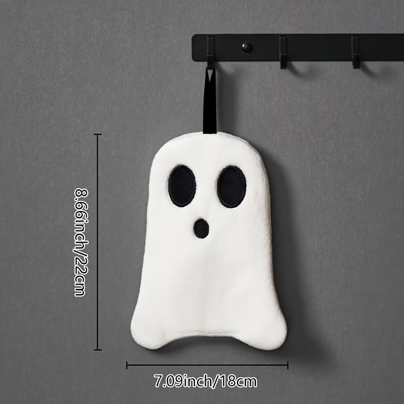 1pc Halloween Bathroom Hand Towel - Soft, Absorbent Coral Fleece, Black & White Spooky Design with Broomsticks & Pumpkins