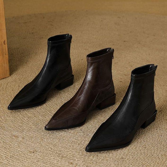 Design pointed fashion thin boots year casual single shoes commuting niche thick heel short boots