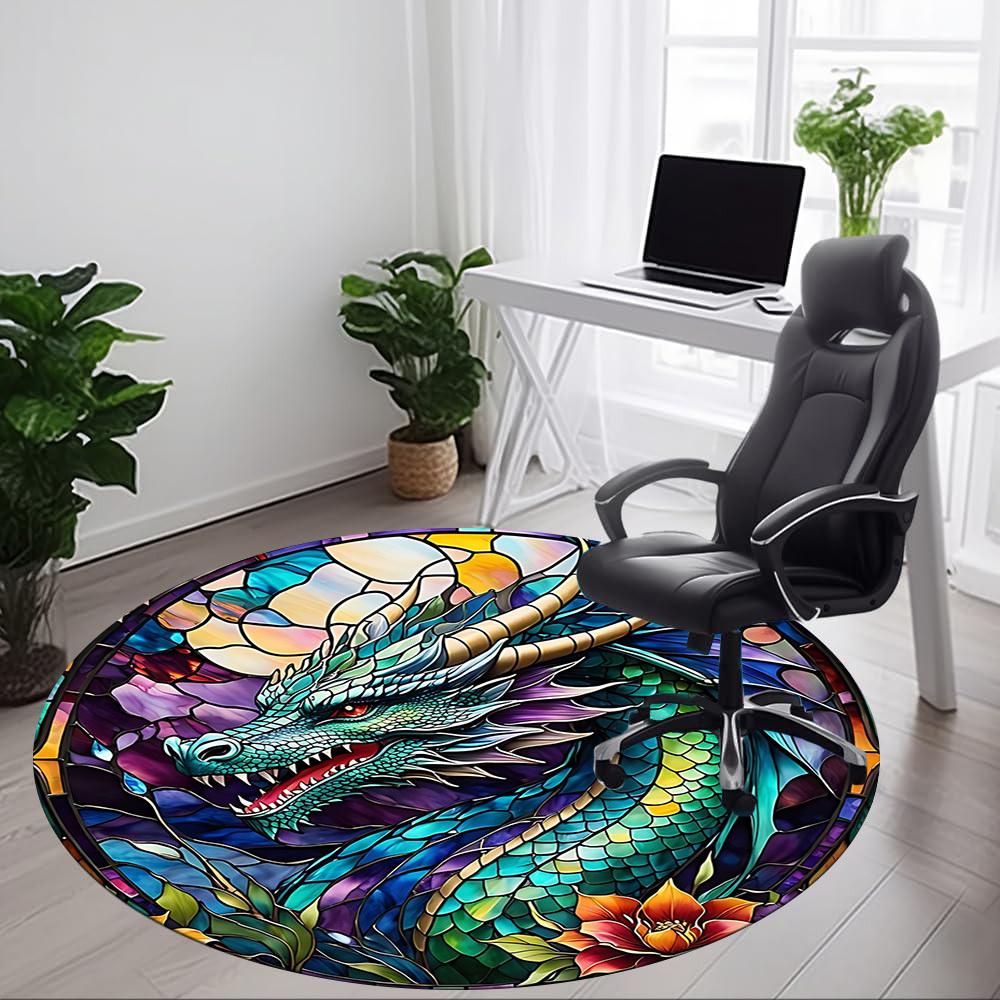 1pc Dragon StainedGlass Office Round Area Rug, Under Office Chairs Bedroom Living Room Home Decor, Room Deco
