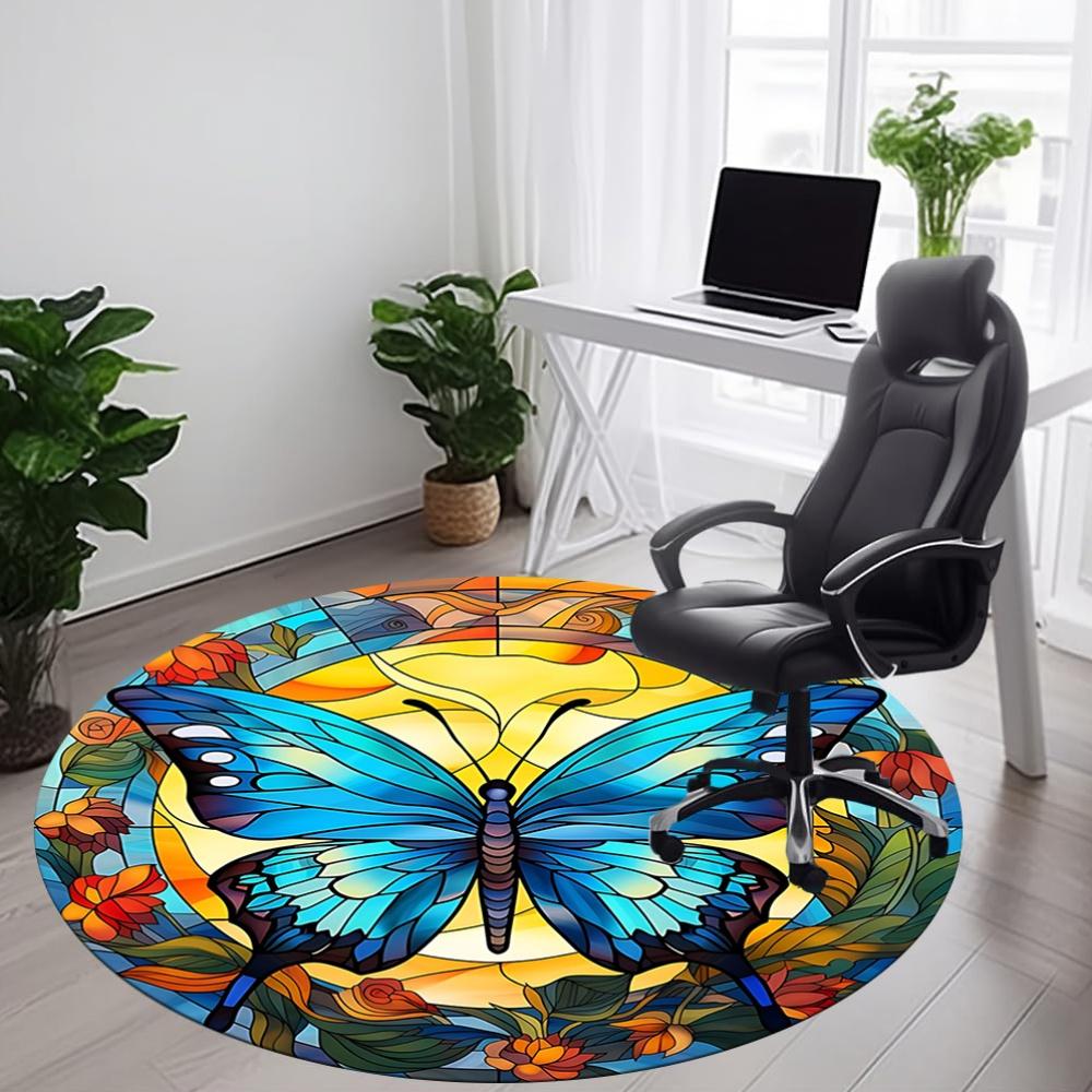 1pc Butterfly StainedGlass Office Round Area Rug, Under Office Chairs Bedroom Living Room Home Decor, Room Deco