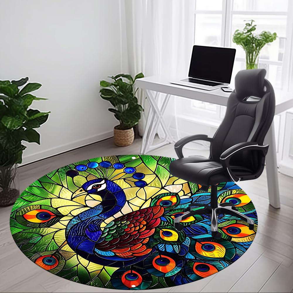1pc Peacock StainedGlass Office Round Area Rug, Under Office Chairs Bedroom Living Room Home Decor, Room Deco