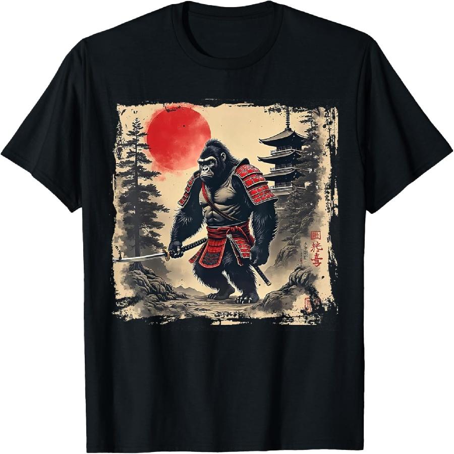 Samuraj Bigfoot Japonský Vintage Grafický Ukiyo-e Art Vtipné Tričko(2)