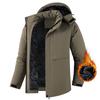 Stay warm and stylish with this fleece-lined hooded cotton jacket designed for men. Perfect for casual outings, this jacket is both windproof and waterproof, ensuring protection against the elements. Made from high-quality polyester fiber, it promises durability and comfort. The jacket features a cozy polyester lining that provides added warmth, making it an ideal choice for chilly weather. Whether you're heading out for a walk or running errands, this versatile outerwear offers both practicality and fashion.