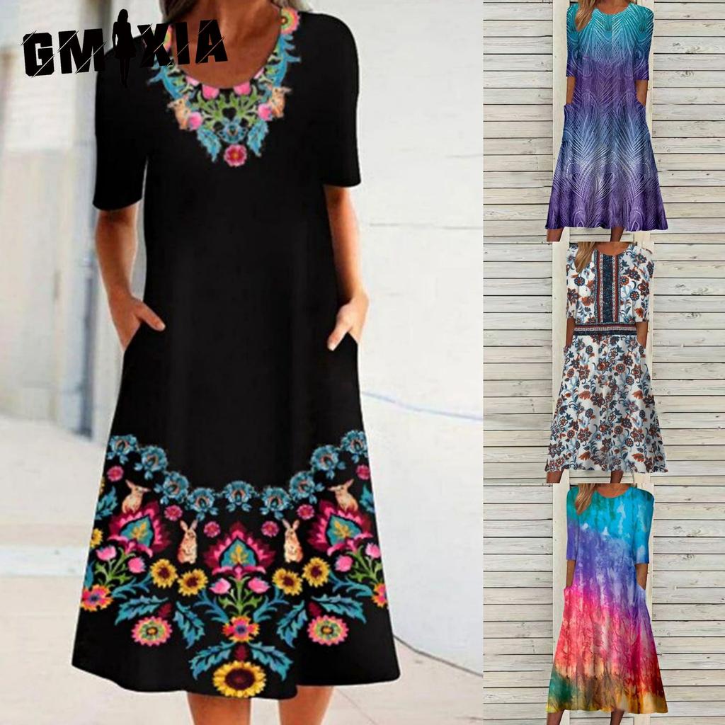 GMXIA Dámská móda léto jaro ležérní šaty s krátkým rukávem a výstřihem do V