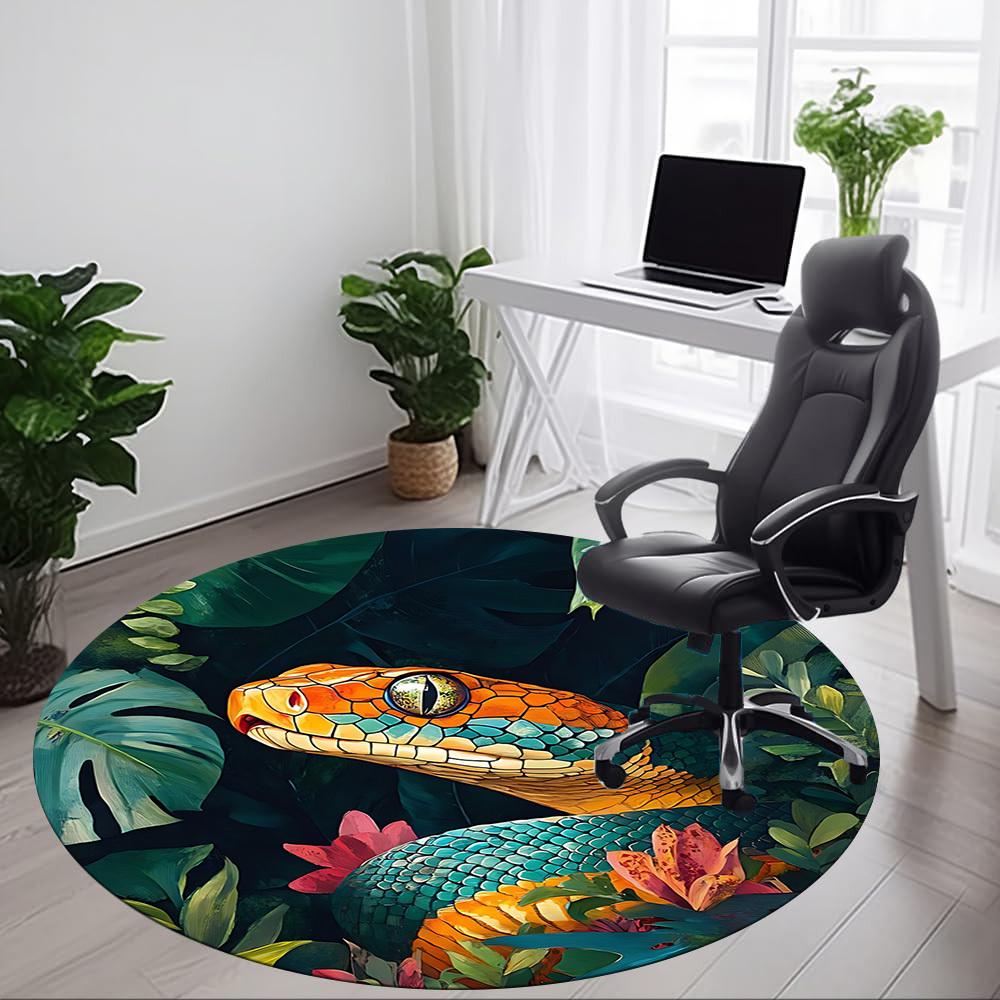 1pc Snake Jungle Office Round Area Rug, Indoor Mat Suitable For Office, Under Office Chairs Bedroom Living Room Home Decor, Room Deco