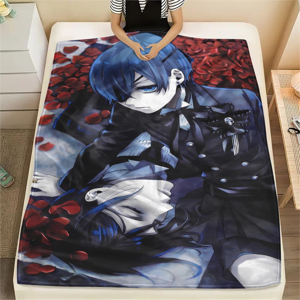 1PC Black Butler Print Flannel Blanket, High quality All Seasons, Home Decor, Warmth and Comfort, Perfect for Christmas Gifts