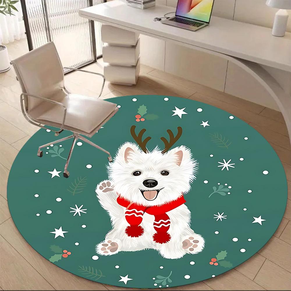 1PC Christmas Pup Office Round Area Rug, Mat Suitable ForOffice, Under Office Chairs Bedroom Living Room Home Decor, Room Deco