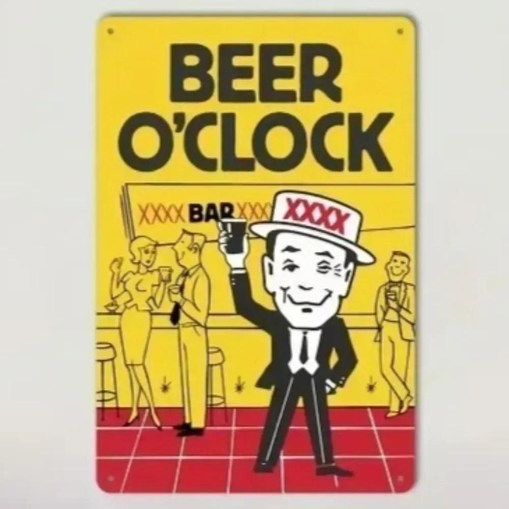 Metal Wall Decor for Home Retro Beer OClock Sign Classic Cartoon Garage Man Cave