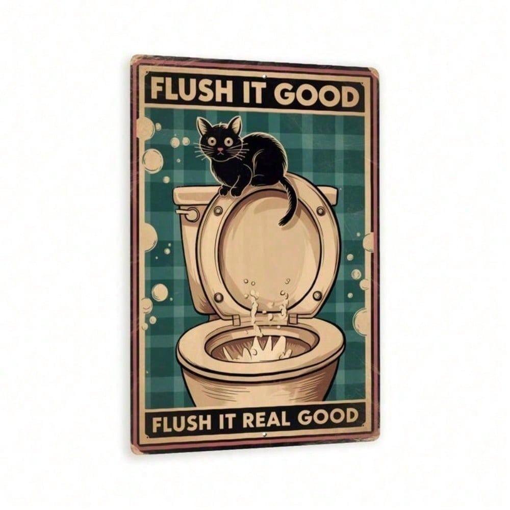 WONDERWALL Vintage Metal Sign 8x12 InchFunny Cat Bathroom Wall ArtFlush It Real GoodRetro Home Decor Tin Sign