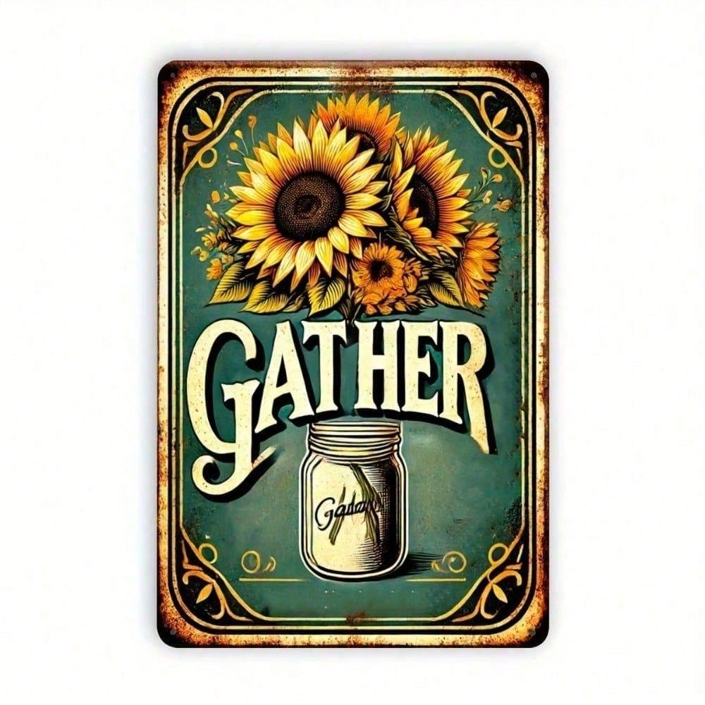 GATHER Sunflower Metal Tin Sign Vintage Wall Decor Rustic Farmhouse Kitchen Bar Cafe Art Poster