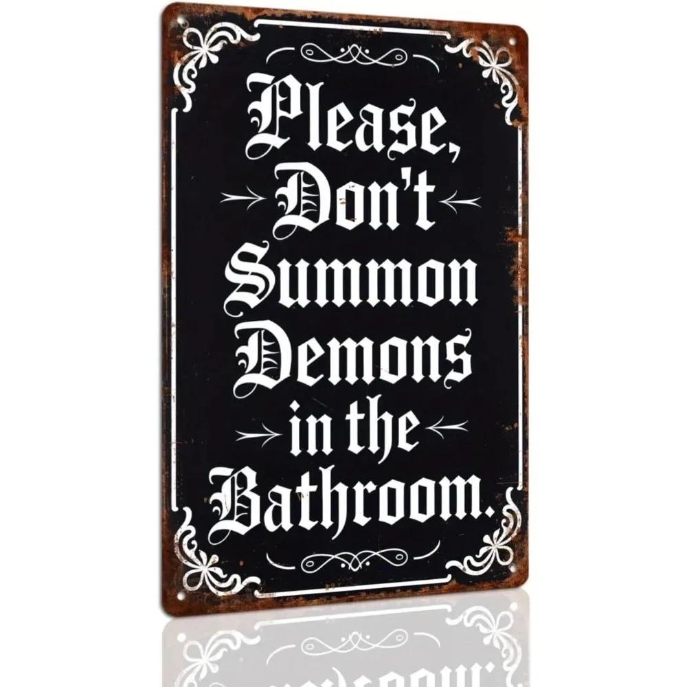 Funny Warning Sign Dont Summon Demons Halloween Metal Tin Sign for Bathroom Wall Decor