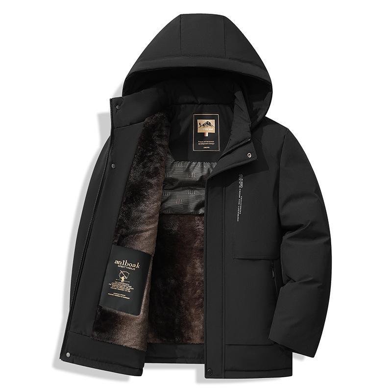 Men's Business Casual Hooded Winter Jacket - Thick Padded Cotton Outerwear for Middle-Aged and Elderly Warmth and Style.