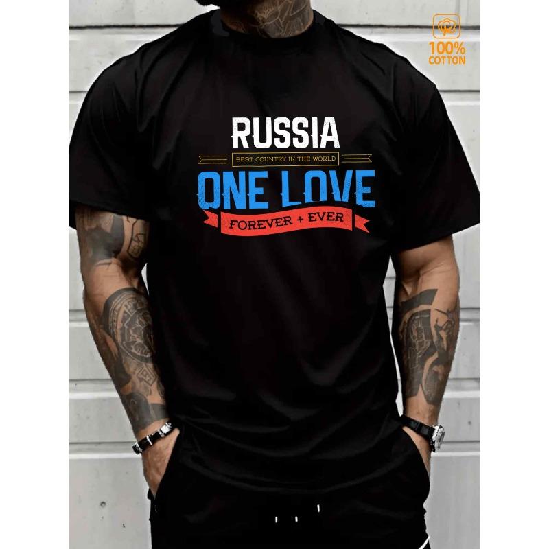 European sizes Men'S Russia Love Forever Graphic T-Shirt -Heavyweight Casual Round Neck Short Sleeve, Russia Map & Cyrillic Lettering Print