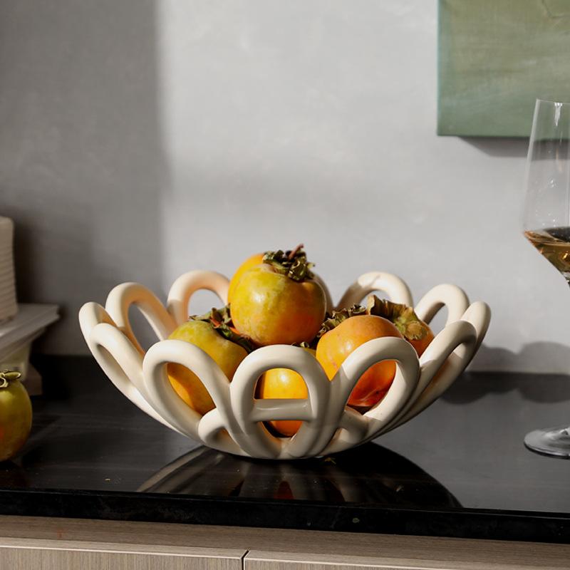 Creative Hollowed-out Ceramic Fruit Plate Geometric Tray Homeused Art Storage Tray Snack Bowl Desktop Storage Container