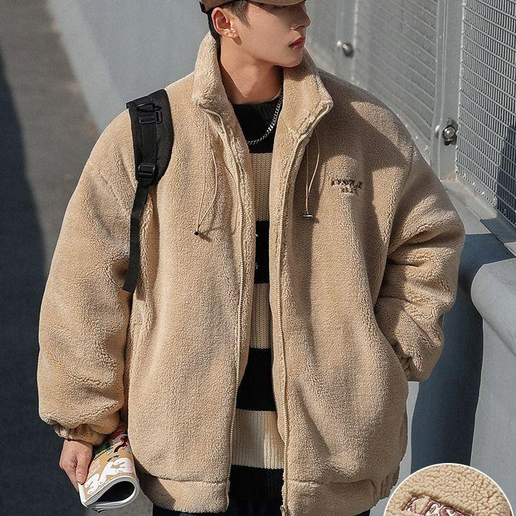 Stay warm and stylish this winter with this cozy fleece lambswool jacket. Designed with a stand collar and a loose fit, this casual outerwear piece offers both comfort and fashion. The jacket is crafted from high-quality cotton, including its warm fur interior, ensuring maximum warmth during colder months. Perfect for layering, this jacket is an essential addition to any wardrobe, providing both practicality and a trendy look.