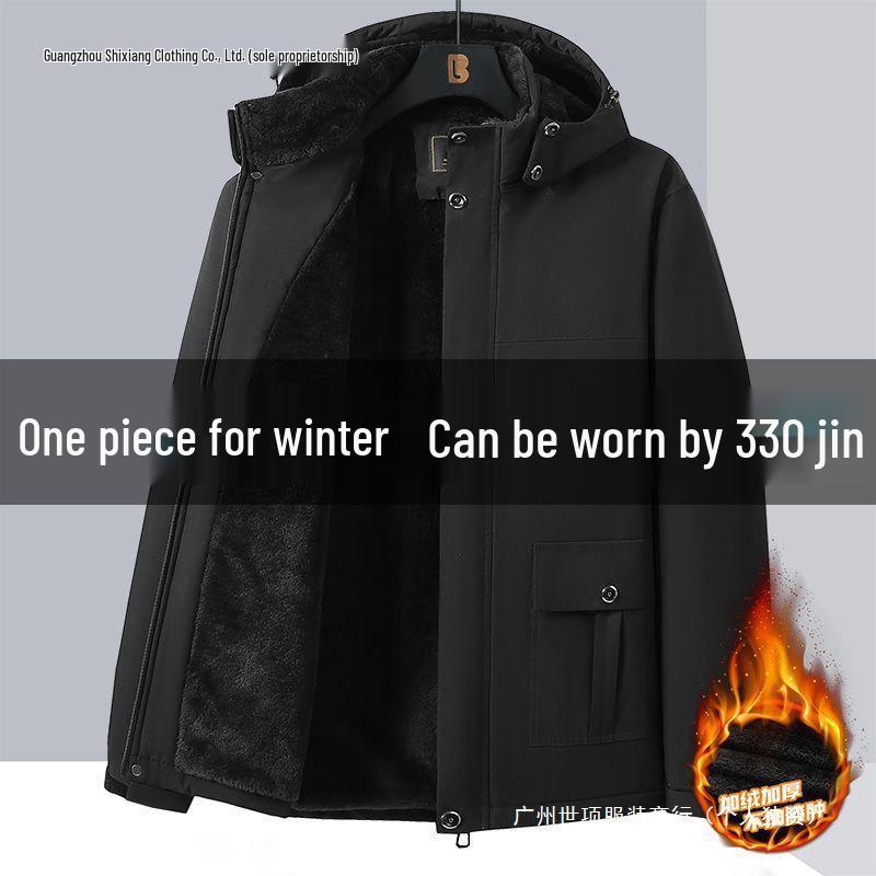 Men's Plus Size Fleece-Lined Winter Coat - Loose Fit Cotton Jacket for Middle-Aged Dads