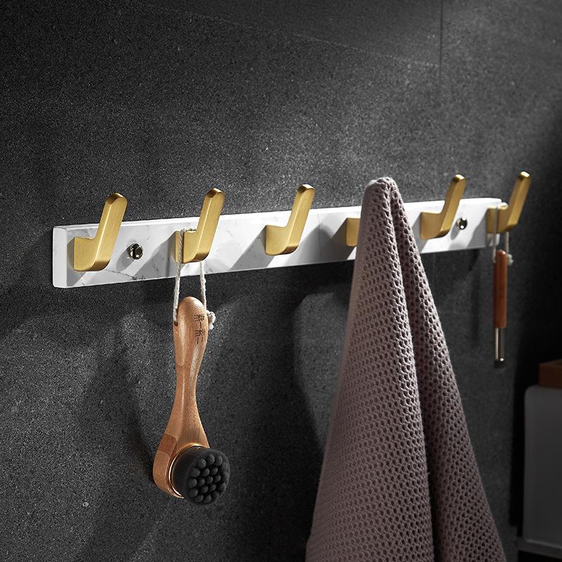 Bílý mramor Koupelnový řadový háček Nástěnný Toaletní háček na oblečení Kartáčovaný zlatý hliníkový háček na ručníky Úložný regál Koupelnové doplňky
