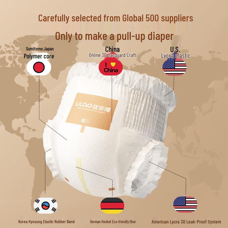 Youlebo (ULOP) Dream Paris Ultra-thin Breathable Baby Pull-up Diapers.