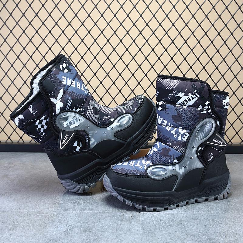 Winter 2025 Boys' High-Top Waterproof Snow Boots with Thick Velvet Lining