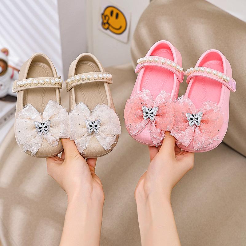 Little Girl Princess Bow Pearl Shoes - Spring/Autumn Soft Sole Sandals with a New Chinese Fragrance Style.