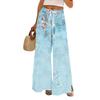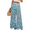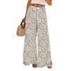 Dámské potištěné kalhoty s širokými nohavicemi s kapsami Vysoký pas Stahovací šňůrka Volné ležérní kalhoty
