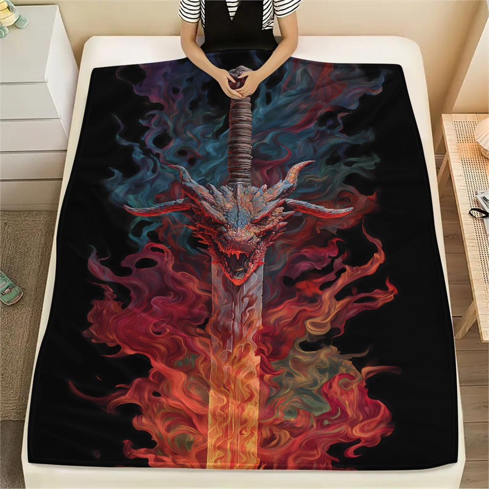 Sword and Dragon Print Flannel Blanket,High quality Comfortable for All Seasons,Home Decor,Warmth and Comfort,Perfect for Christmas Gifts
