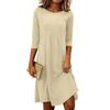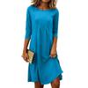 Women's Fashionable And Elegant Pleated Round Neck Three,quarter Sleeve Dress