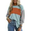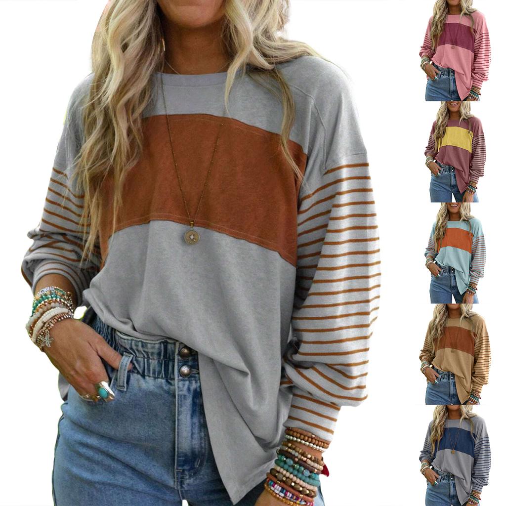 Women's Casual Loose Pullover Striped Contrast Color Long,sleeved T,shirt