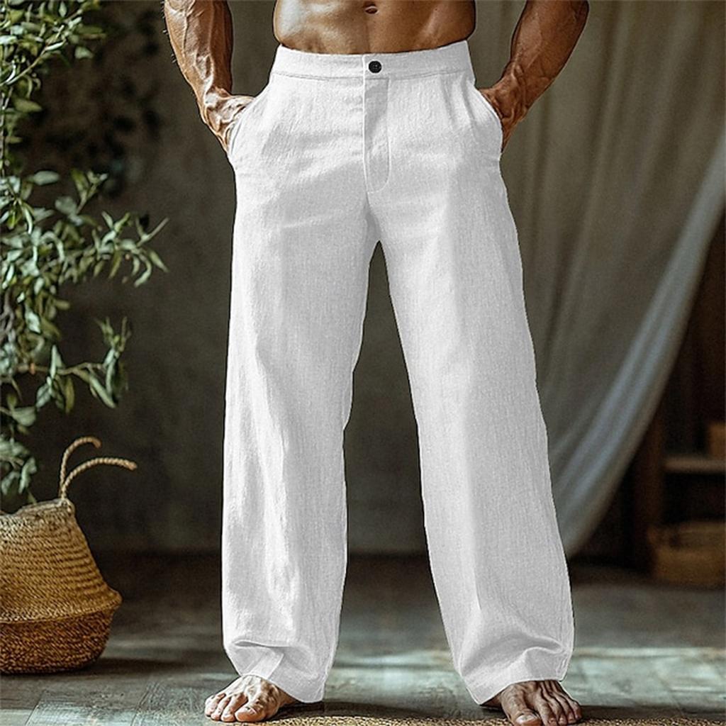 Pánské bavlněné a lněné barevné ležérní dlouhé kalhoty