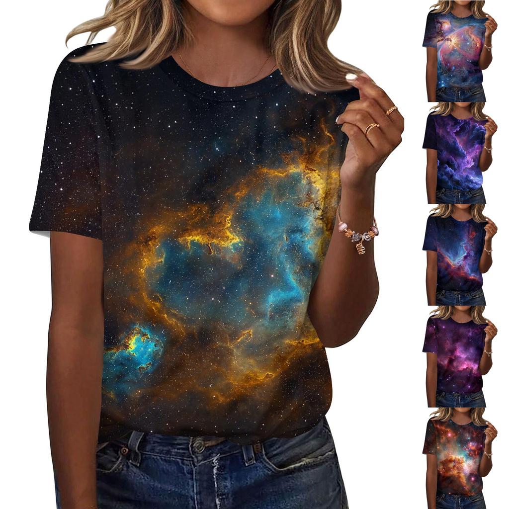 Dámské módní ležérní tričko s krátkým rukávem a potiskem, s kulatým výstřihem