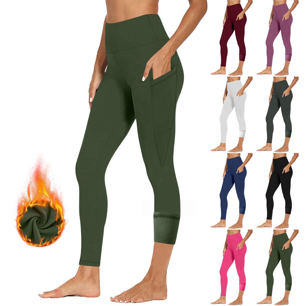 High Waisted Fleece Lined Leggings Women Lightweight Yoga Pants Casual Workout Thermal Warm Tights With Pockets