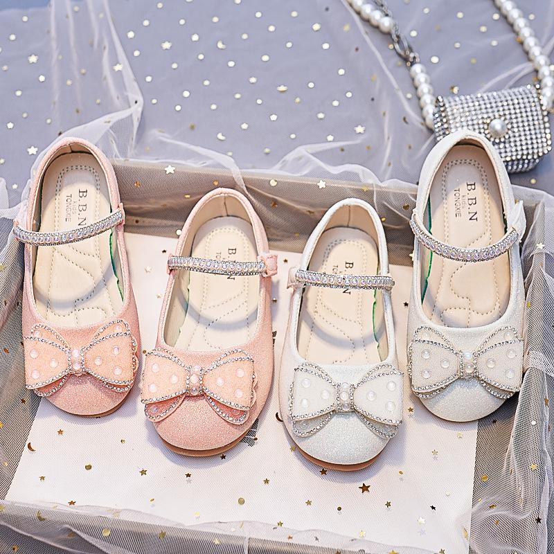 Girls' 2025 Autumn Princess Shoes: Stylish Round Toe Soft Soles with Shiny Bow Crystal Design