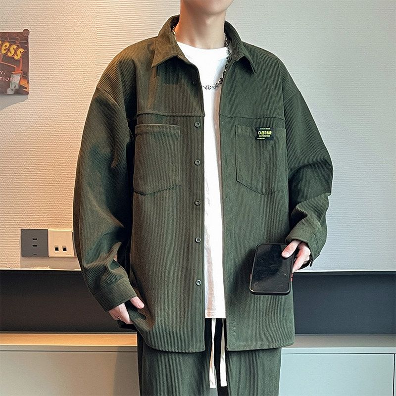 Men's Corduroy Casual Long-Sleeve Shirt for Autumn, Loose-Fitting Shirt Jacket by Mr. Mengmaite Hezi