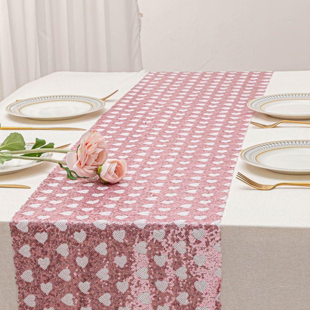 Valentines Day Sequined Mesh Table Runner Love Heart Romantic Glitter Table Linens Sparkly Surface Rectangle Table Flag