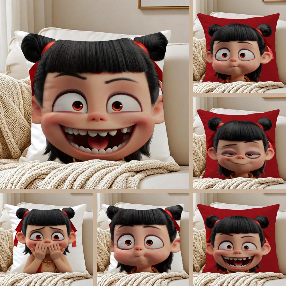 N-Ne Zha Pillow Case Silky Elegant Comfort Sofa Bed Invisible Zipper